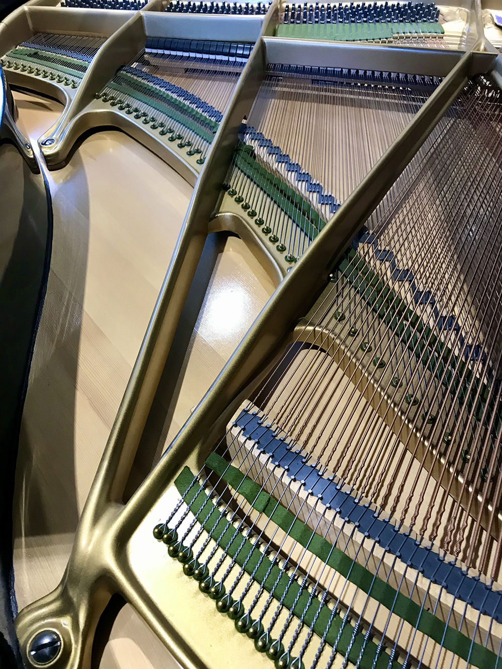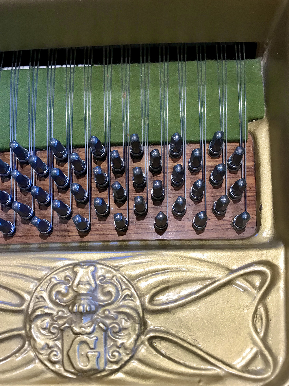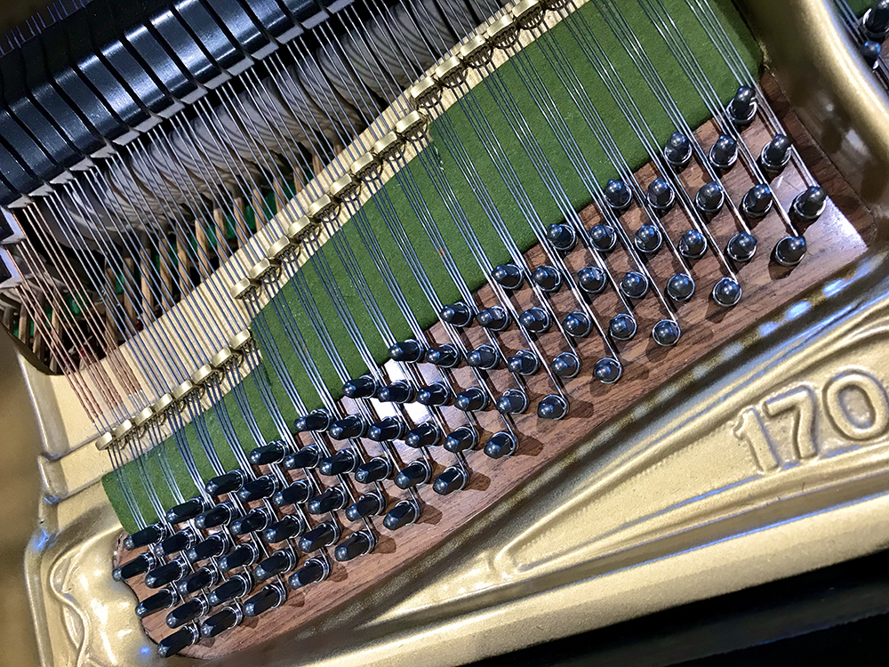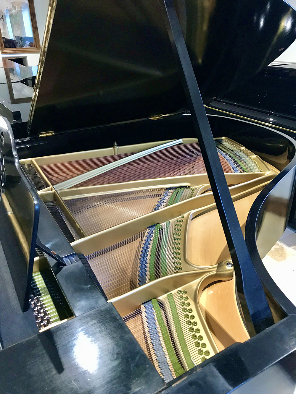 • Frame removed and soundboard stripped and refinished.
