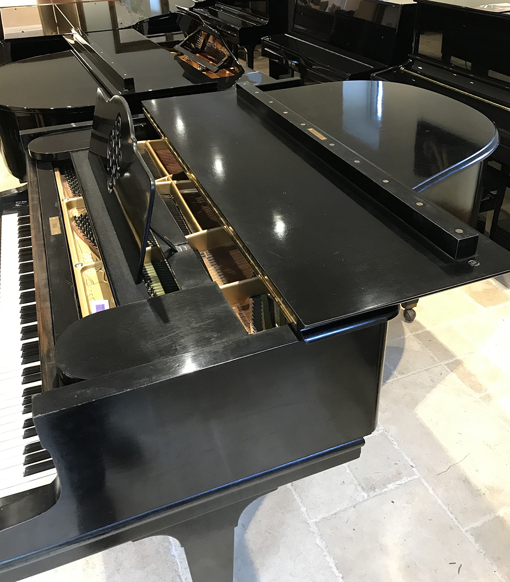 The case is in Ebony black and in good condition. This piano plays and sounds as one would expect of a premier piano maker. A full tone with layered depth and fine touch and excellent repetition.
