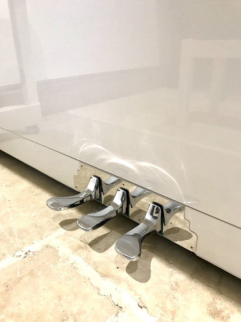 The tone is very warm thanks to the German made Abel hammer heads, and also consists of a strong resonant form and the touch is very responsive thanks to such design aspects like the raised key balance rail chases. The tone is helped by design aspects such as hammer heads are under felted, the Iron plate frame design that creates smooth transition from Bass to Middle and Middle to Treble and continuous pressure bar. Solid Spruce soundboard and five back bracings that reinforce the entire piano structure which help with the soundboard Crown and tuning stability. Nice design touches like the smooth rounded case legs and the Chrome kick plate behind the pedals. This piano also features a standard Celeste rail/practice third pedal. The stool included with this piano is adjustable and matching in finish.