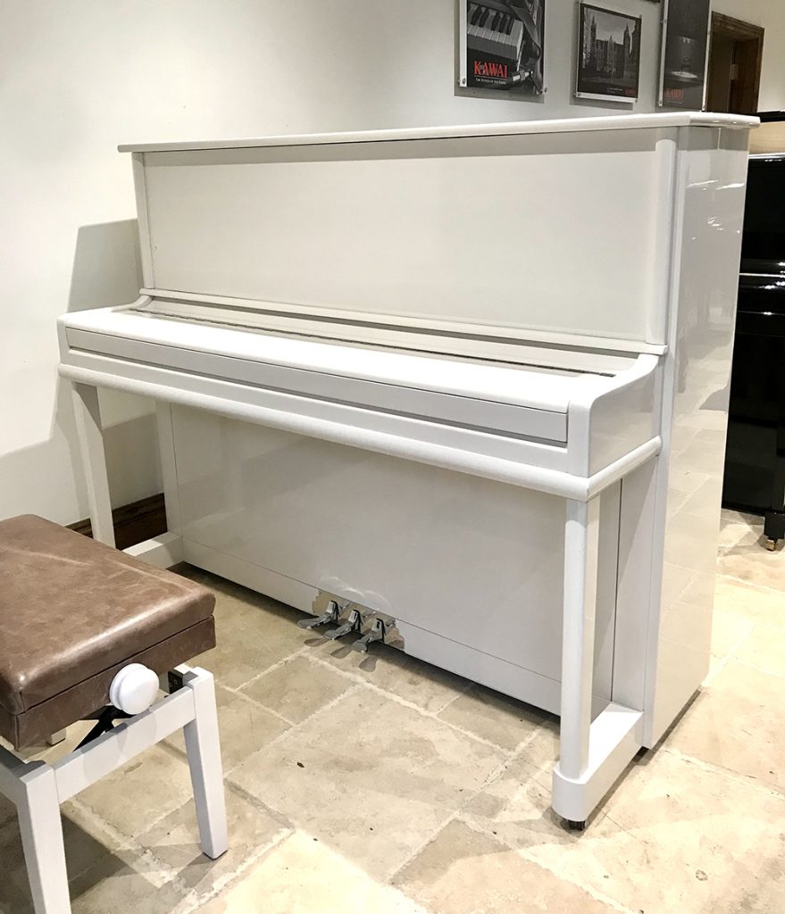British company brand recent upright piano in high gloss white in immaculate condition outside and in. The polish has no scratches to be noticed or dents. The action has very little wear and tear as one would expect for a piano that is only 11 years old. Edelweiss is a British piano company, the only one left standing and they produce high quality premium pianos that are listed for a minimum of around £25,000 for their basic self-playing upright piano. They are based in Cambridge and now only produce pianos to order for the higher end of the piano market.