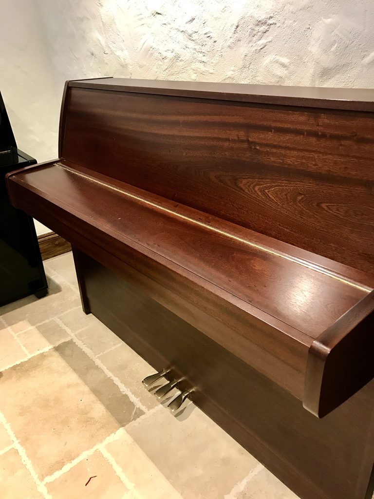 This piano would suit all grades and is relatively good on the pocket. The touch is even throughout and so is the tone. This piano has had little use in its time so there for little wear and tear on the action. The looks of the piano are open grain Walnut and the case is in excellent condition.
