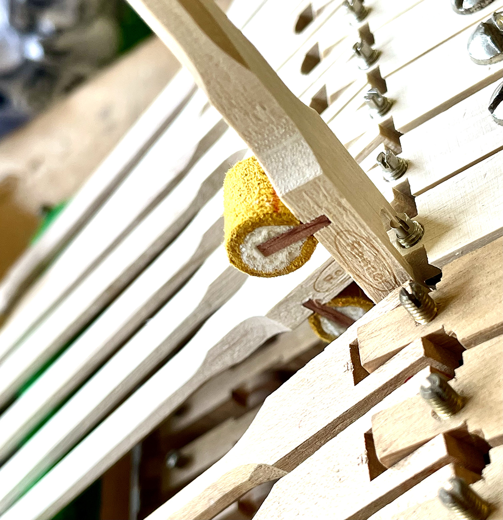 – Full restring with Heller bass strings and Roslau steels. Bass strings made to Bosendorfer patent